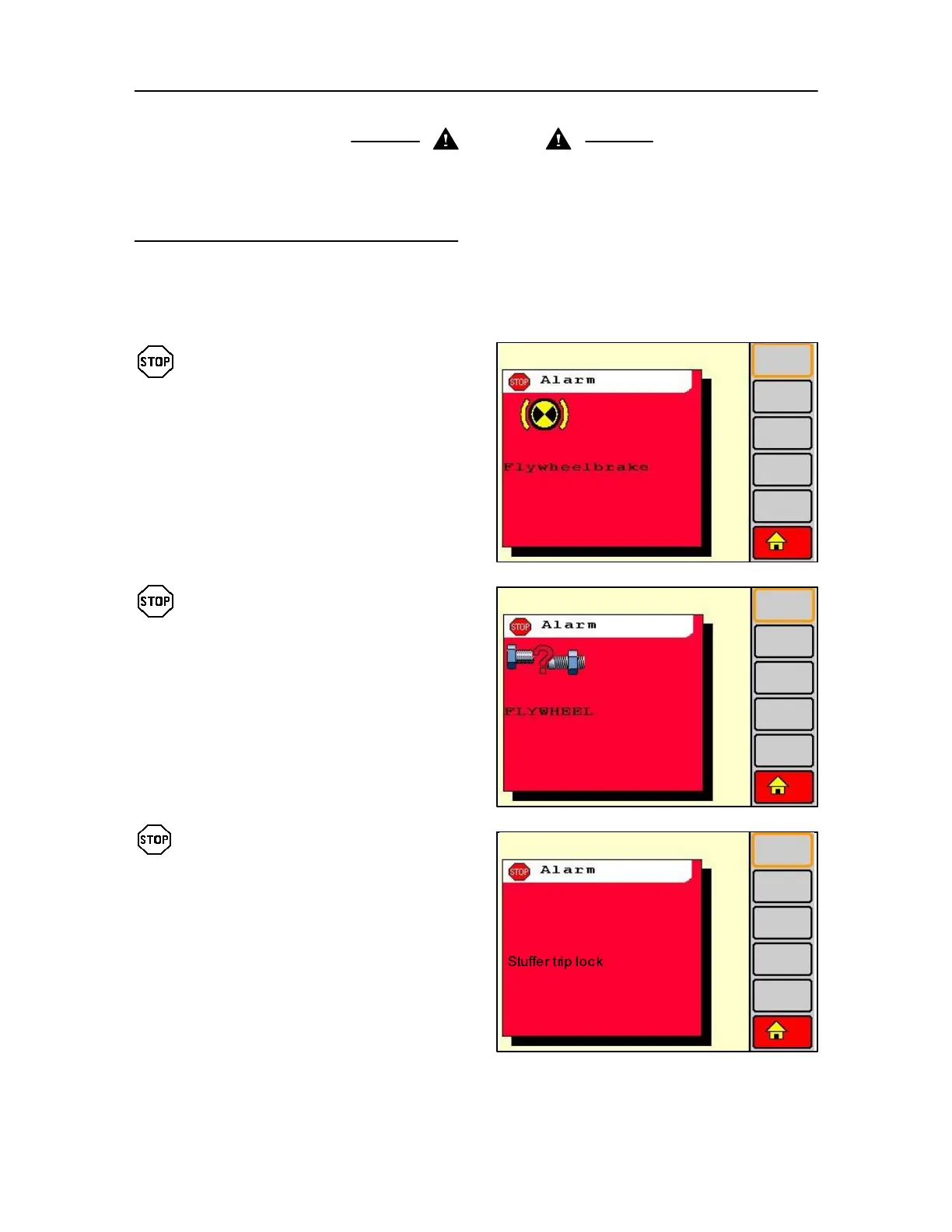STOP ALARM MESSAGES (RED) WARNING