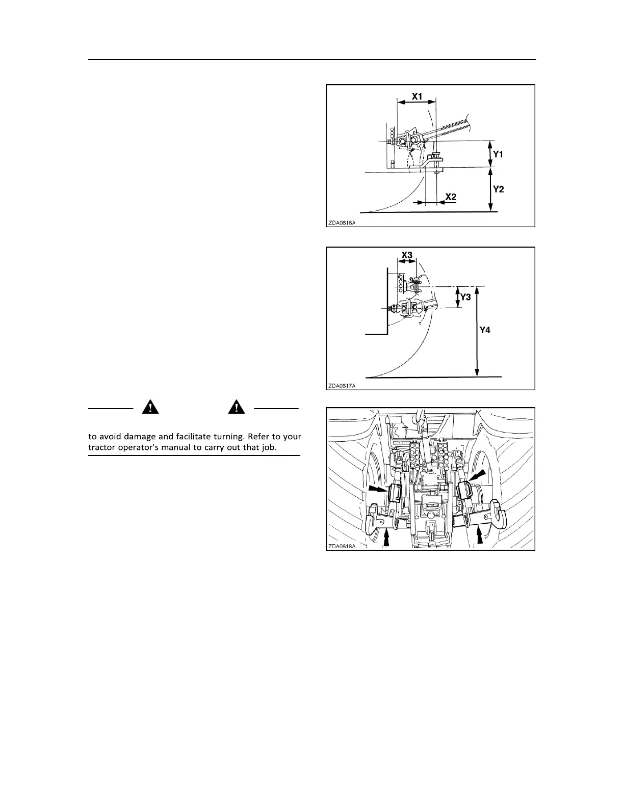 Adjust the drawbar to the following dimensions for all