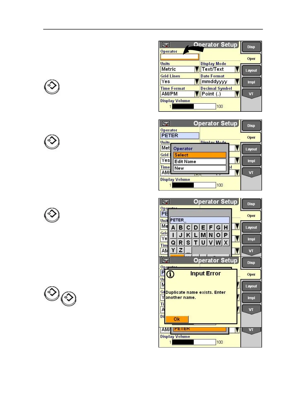keypad and enter a name for the operator.