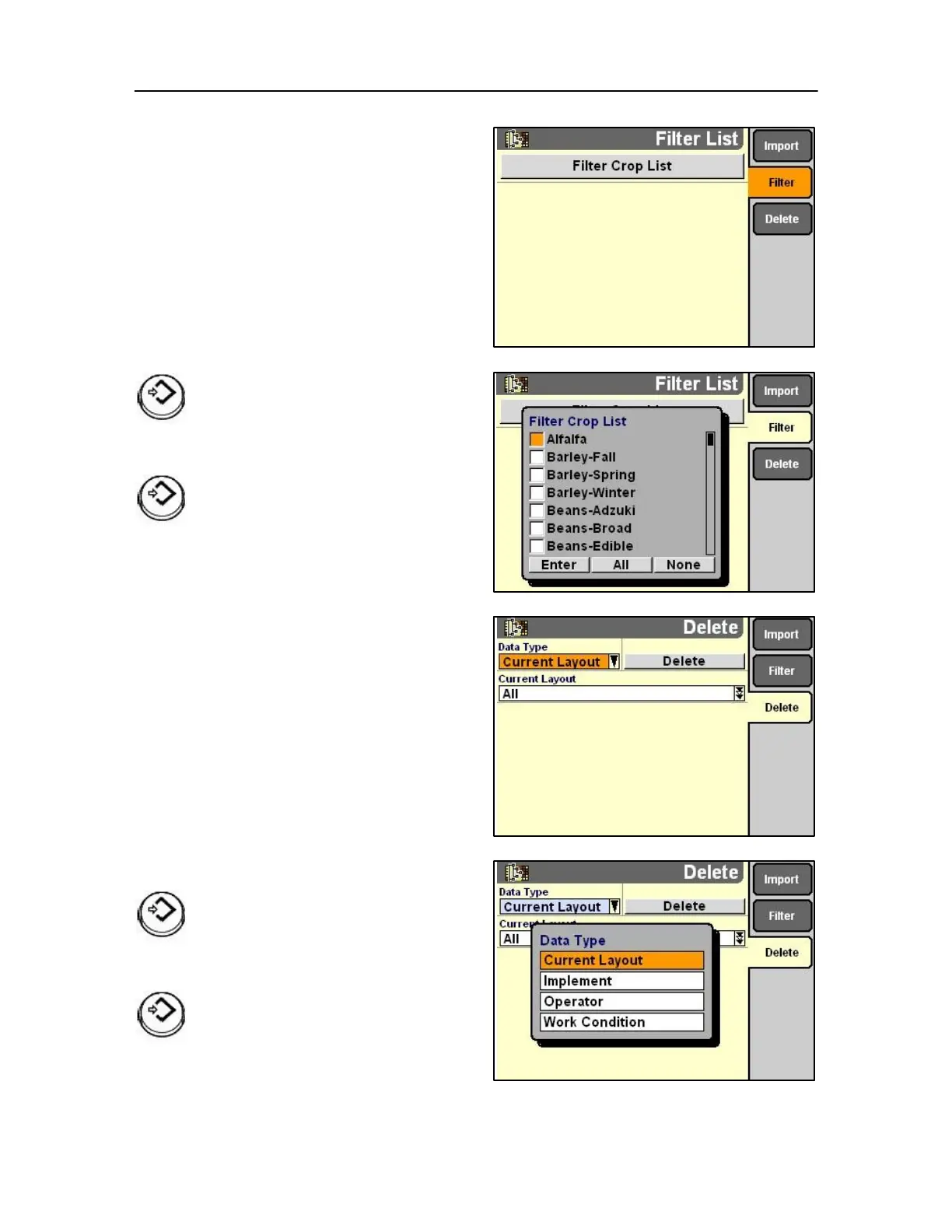The filter crop list enables selection of a certain crop