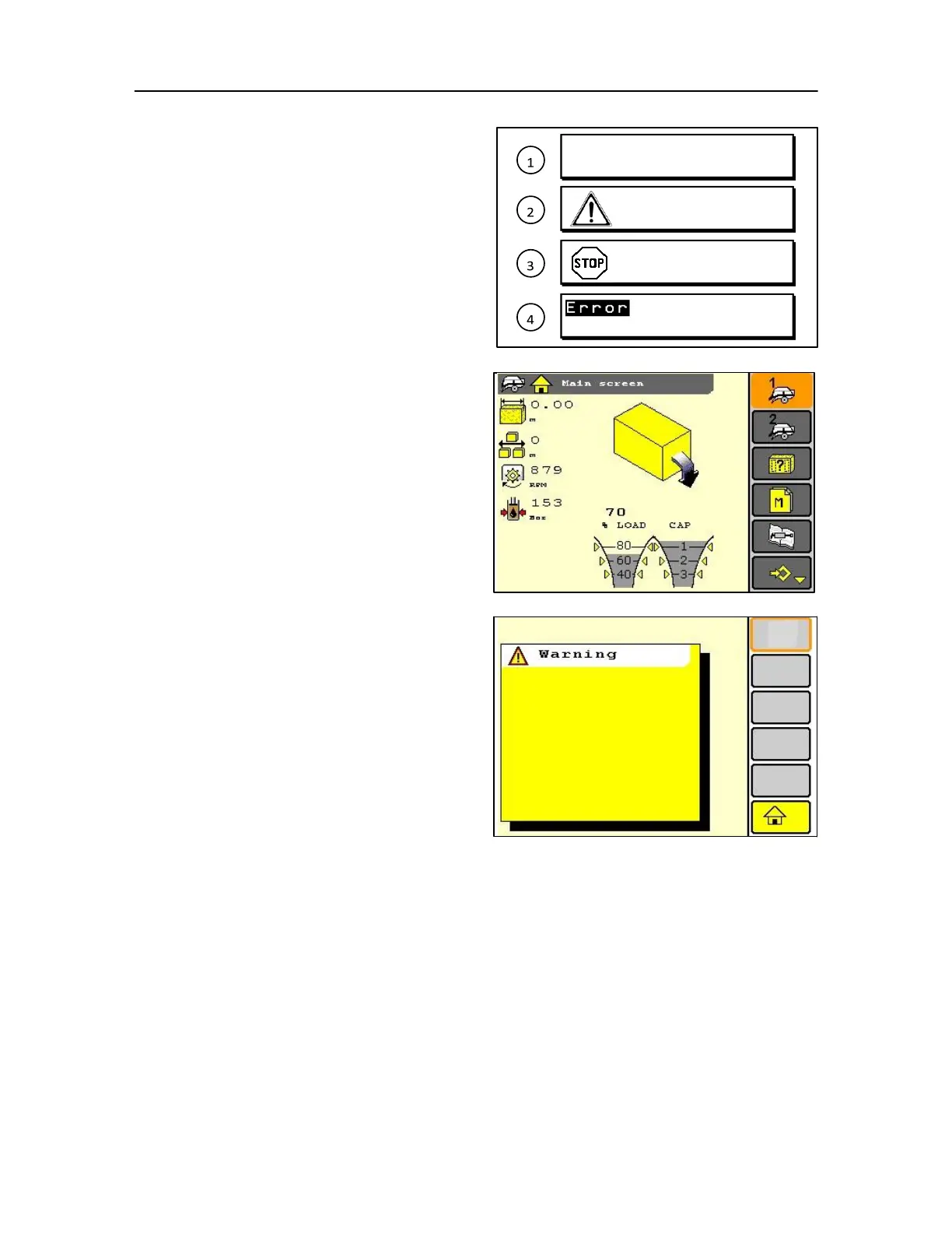 Case IH LB433 - Monitor Messages: Operational, Warning, and Alarm