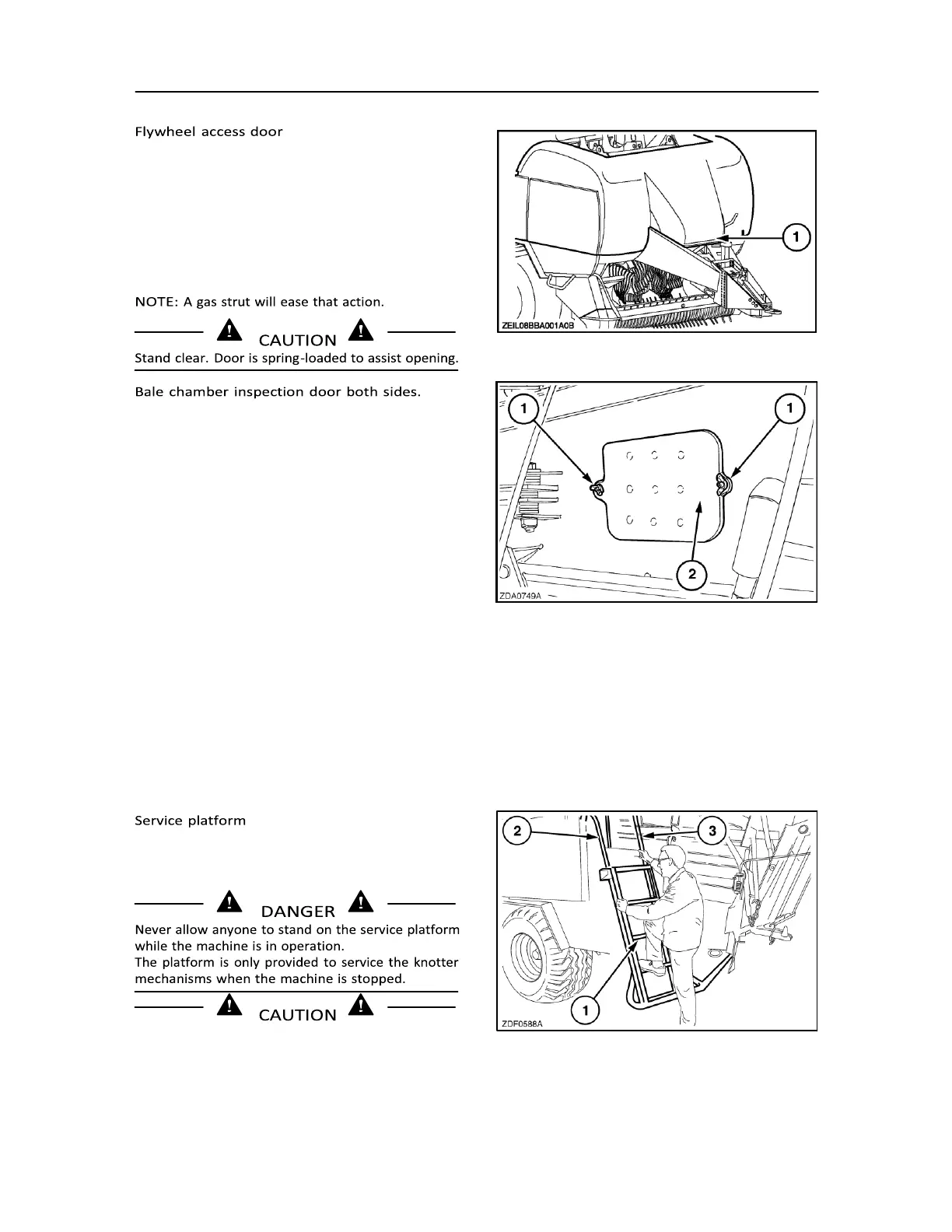 Ensure the baler is stopped. Always mount and leave
