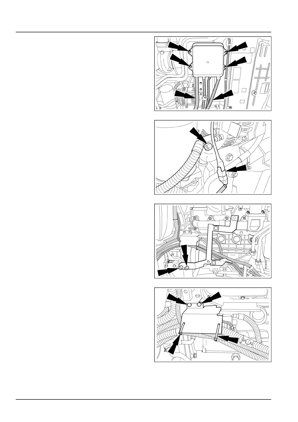 B.Removethestartermotorshieldretainingbolts.