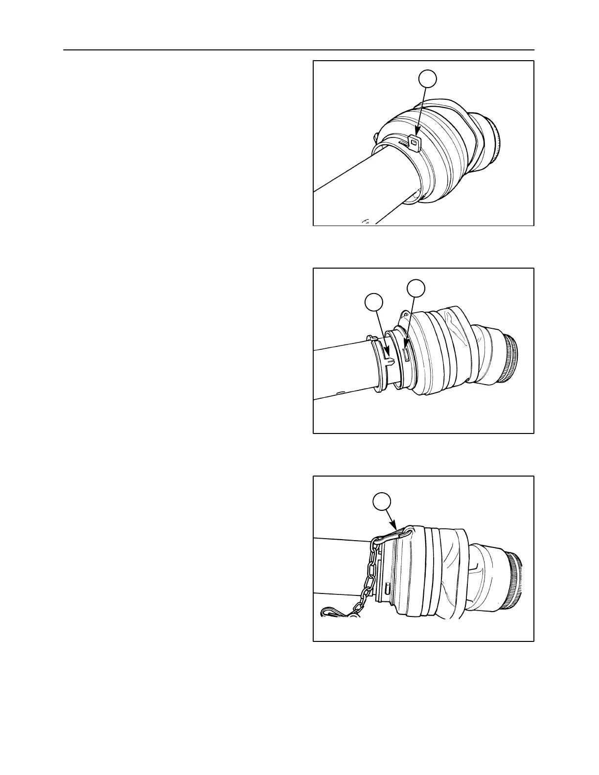 1. Slide the shield tube, 1, and bell, 2, onto the shaft.