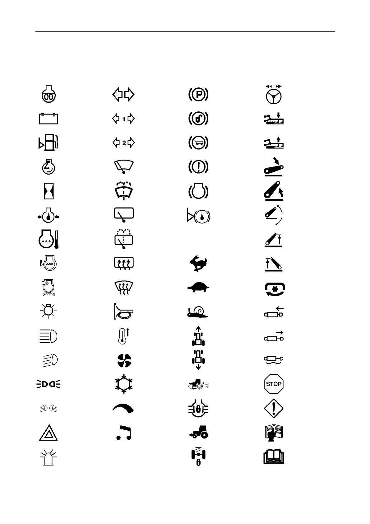 As a guide to the operation of your tractor, various universal symbols have been utilised on the instruments,