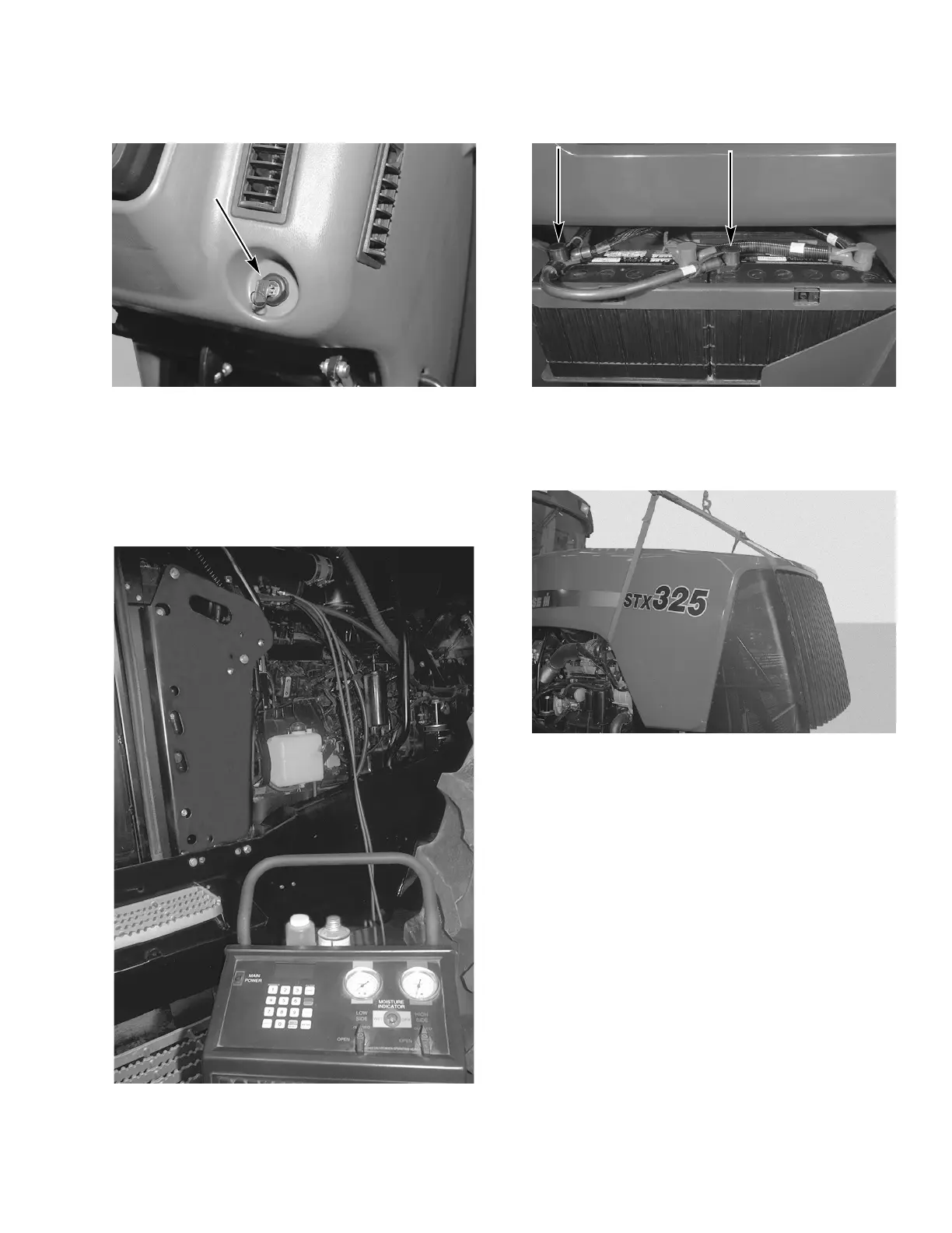 remove the hood and support bar from the tractor.