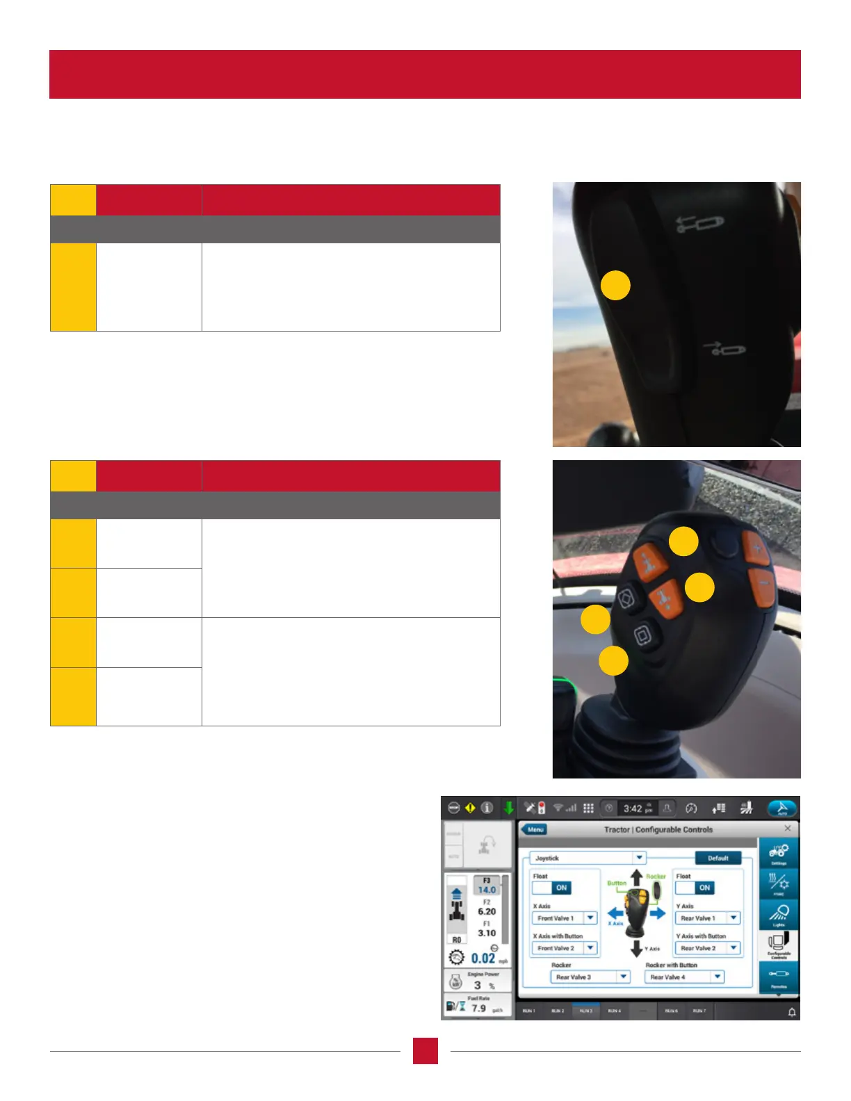 The joystick has other tractor functions which can be controlled on the joystick in addition to the normal loader functions.
