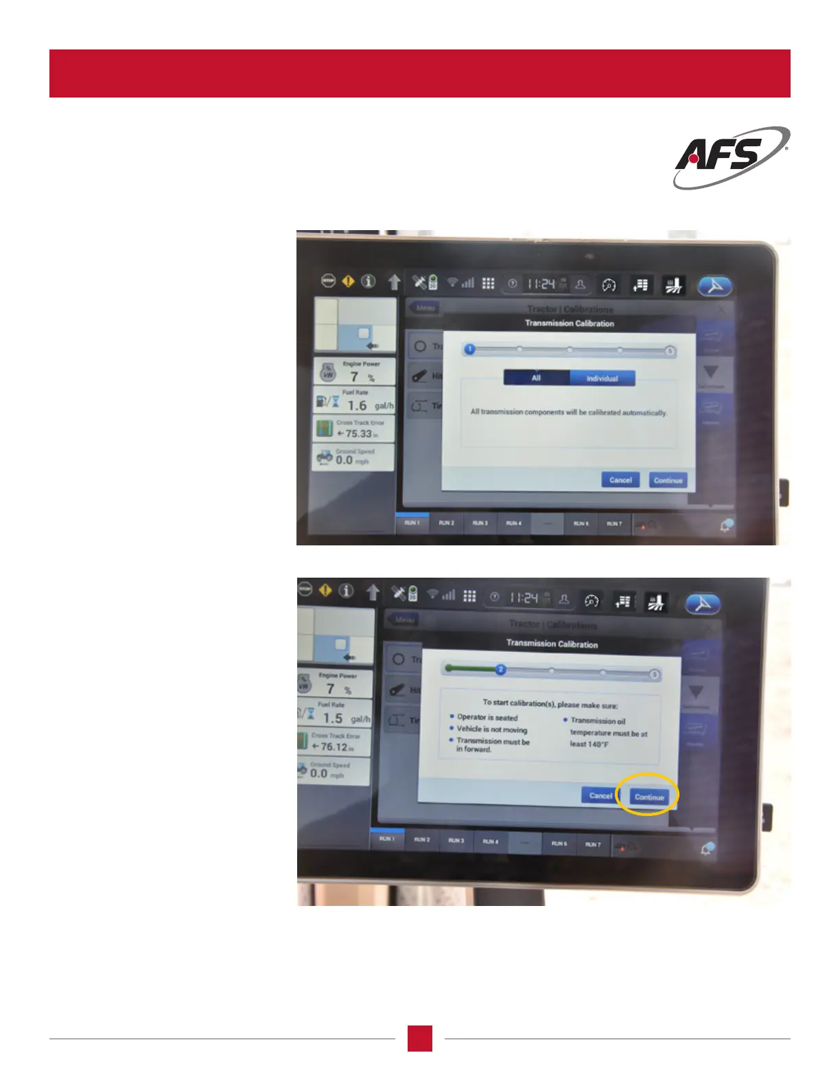 TRANSMISSION CALIBRATION SCREEN (continued)