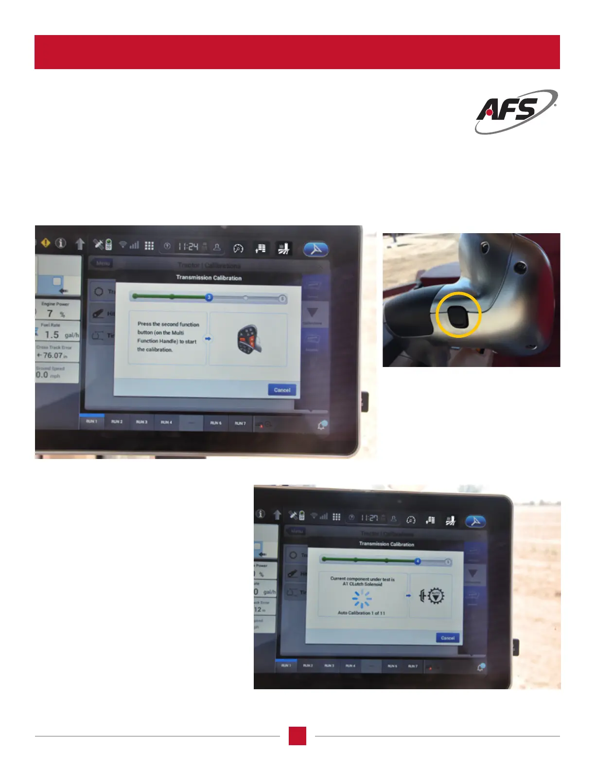 handle and it will start the calibration. At this point it will tell the operator to put the tractor in FORWARD.When the