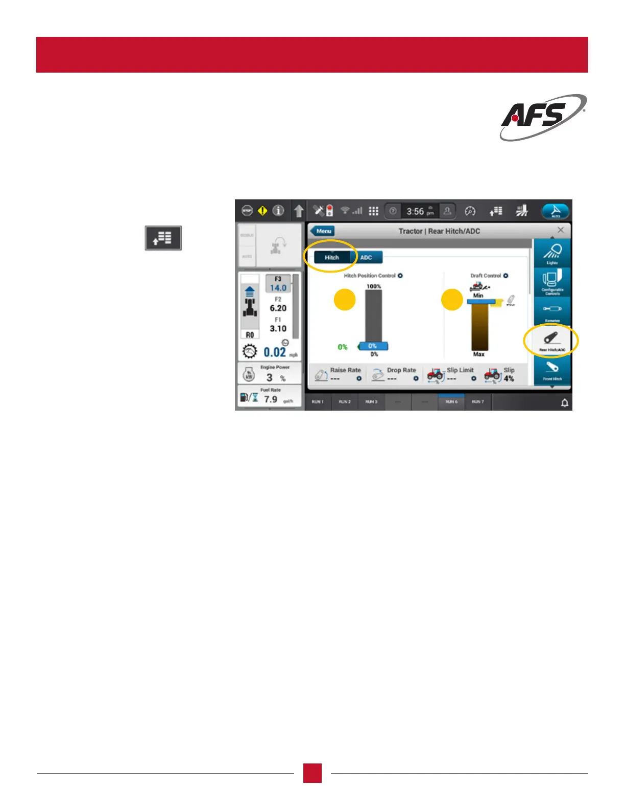 Hitch and Draft Control in the AFS Pro 1200 Screen