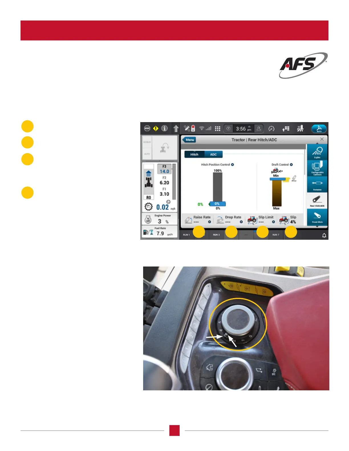 The numbers across the bottom of the screen are values set with the other hitch settings selections on the left knob.