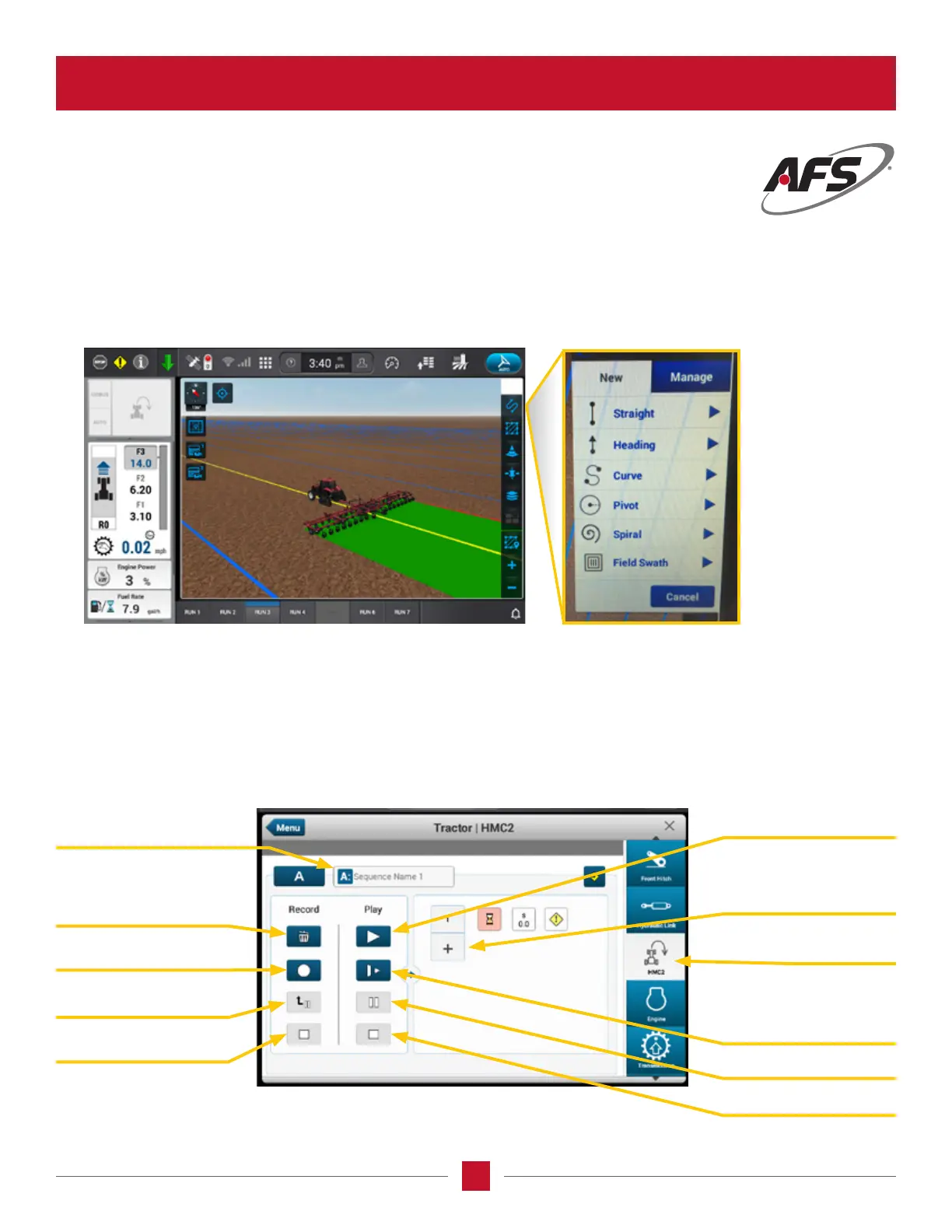The recording and editing of a sequence is completed through the AFS Pro 1200 display by pressing the HMC wizard on