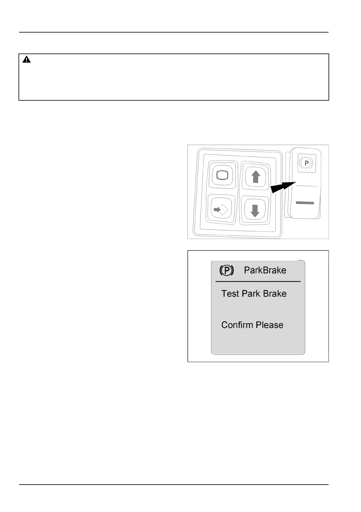 Keepallnon-authorizedpersonnelclearoftheareawhenperformingtheparkingbraketest.Parkthemachineona