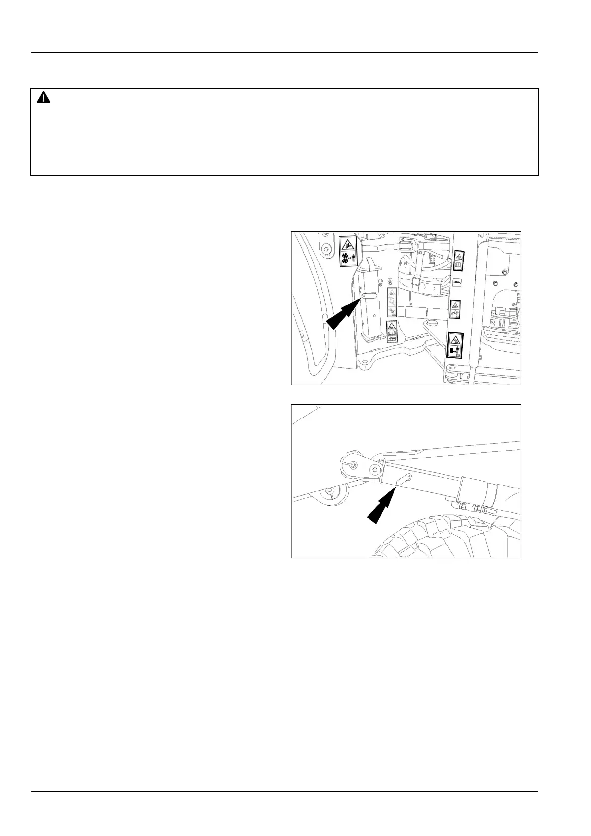Ifyouservicethemachinewiththeloaderliftarmsraised,alwaysusethesupportstrut.