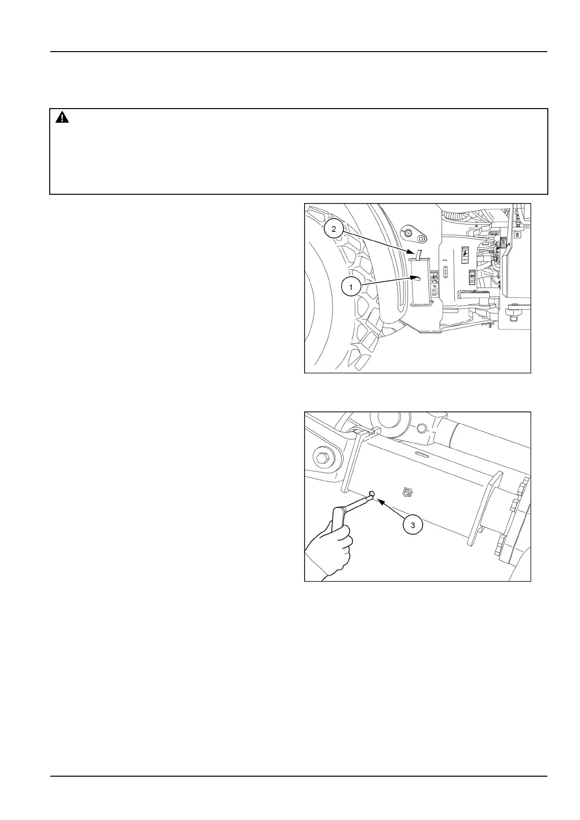Ifyouservicethemachinewiththeloaderliftarmsraised,alwaysusethesupportstrut.Removethe