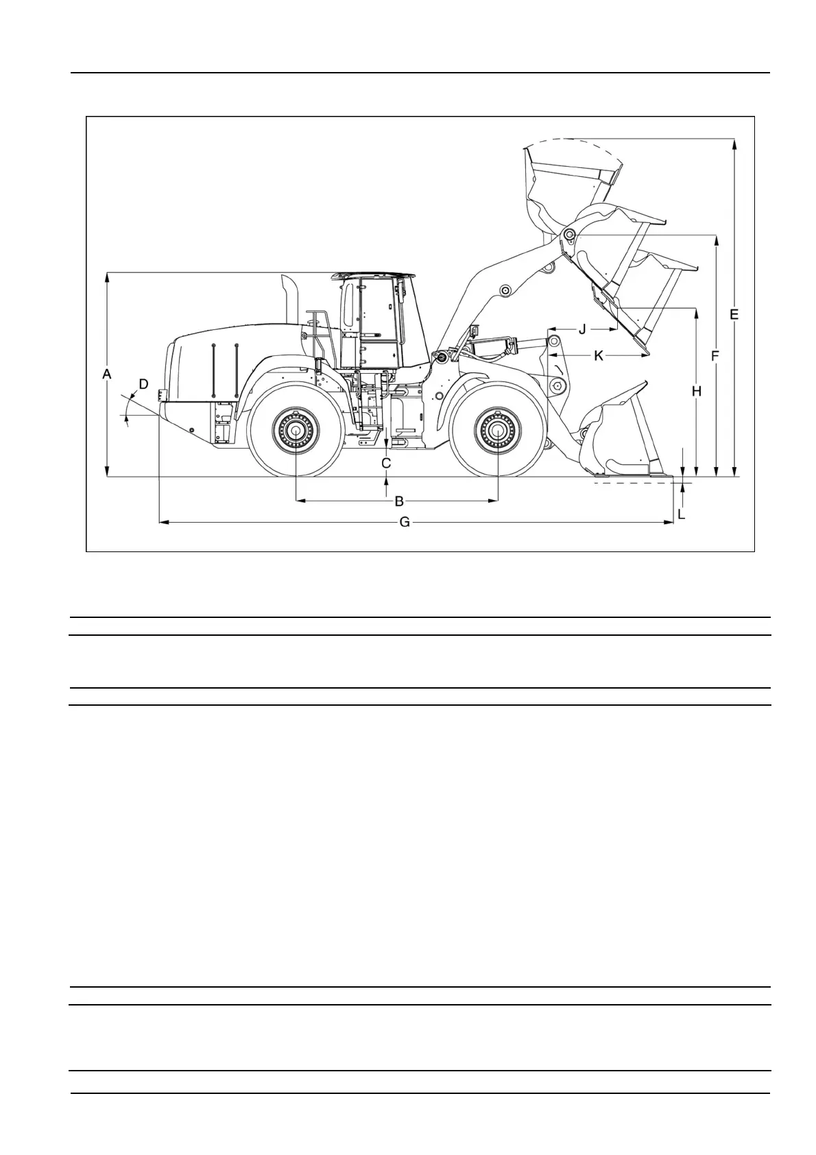 K(reach-2.13m(7.0ft),45°dump)1965mm(77.4in)2054mm(80.9in)