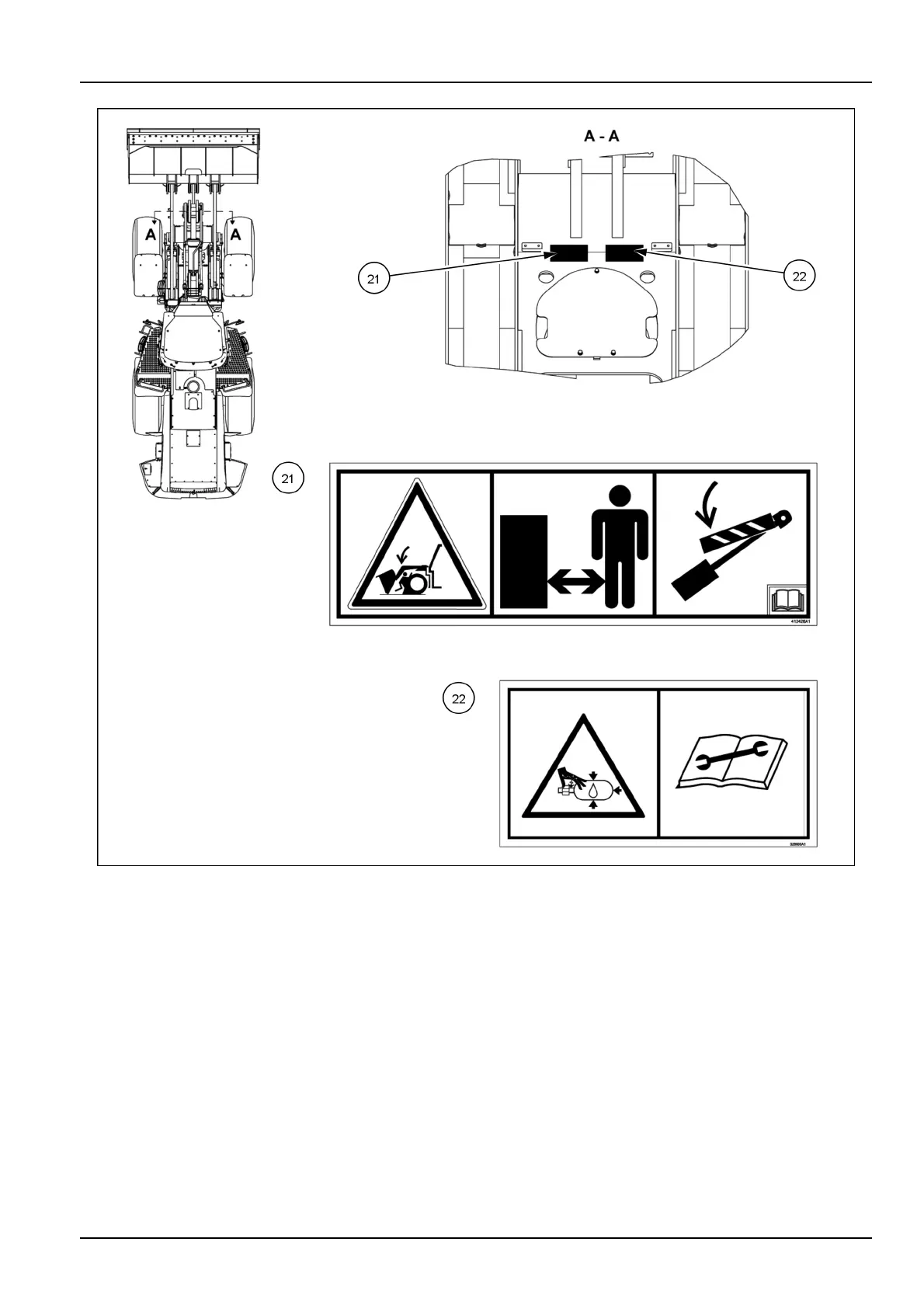 21.Incaseofservicingofthemachinewiththeloadersliftarmsraised,installalwaysthesupportstrutontothe