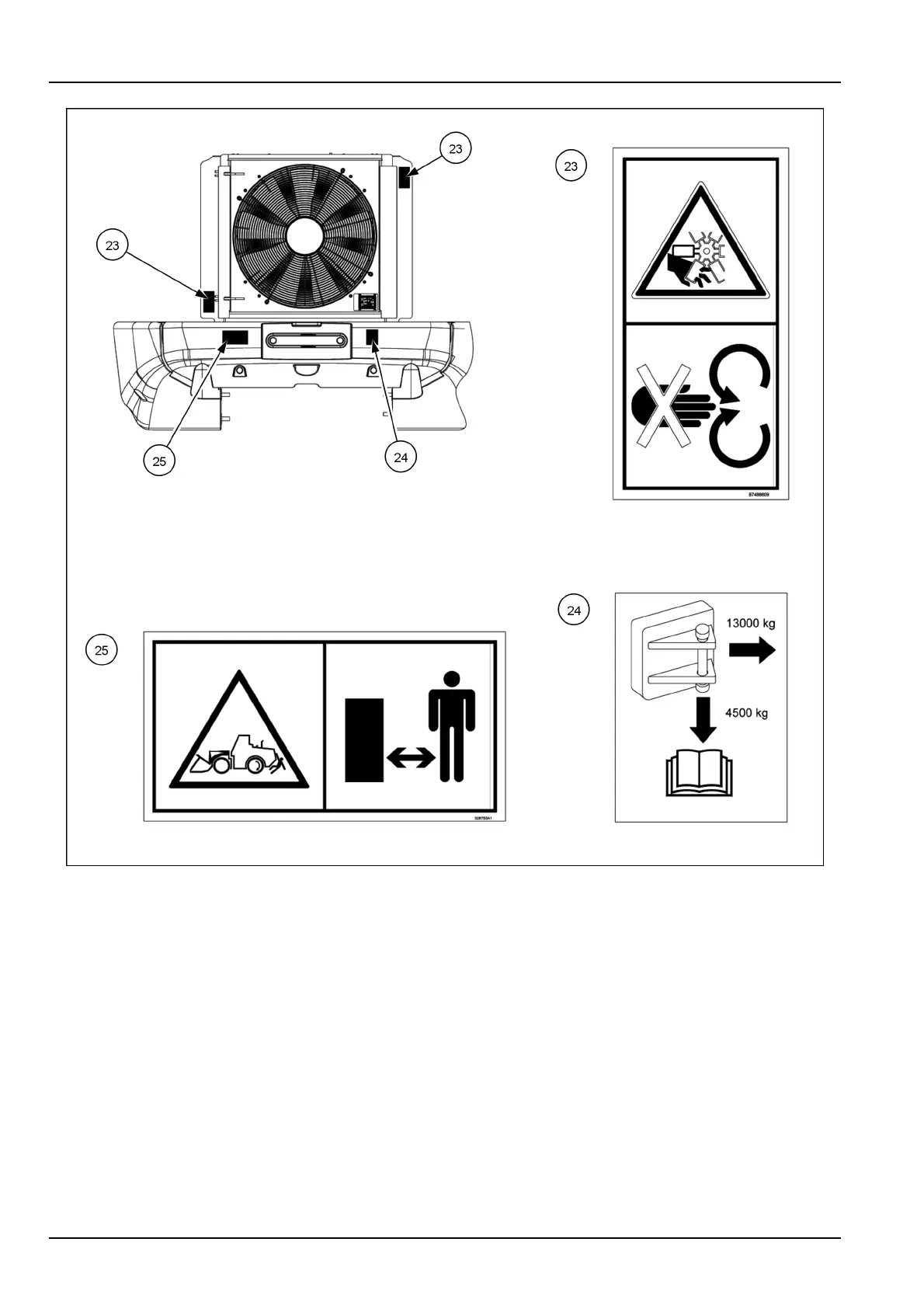 25.Warning-Runoverhazardplate.Keepclearfromtheoperatingareaofthemachine.
