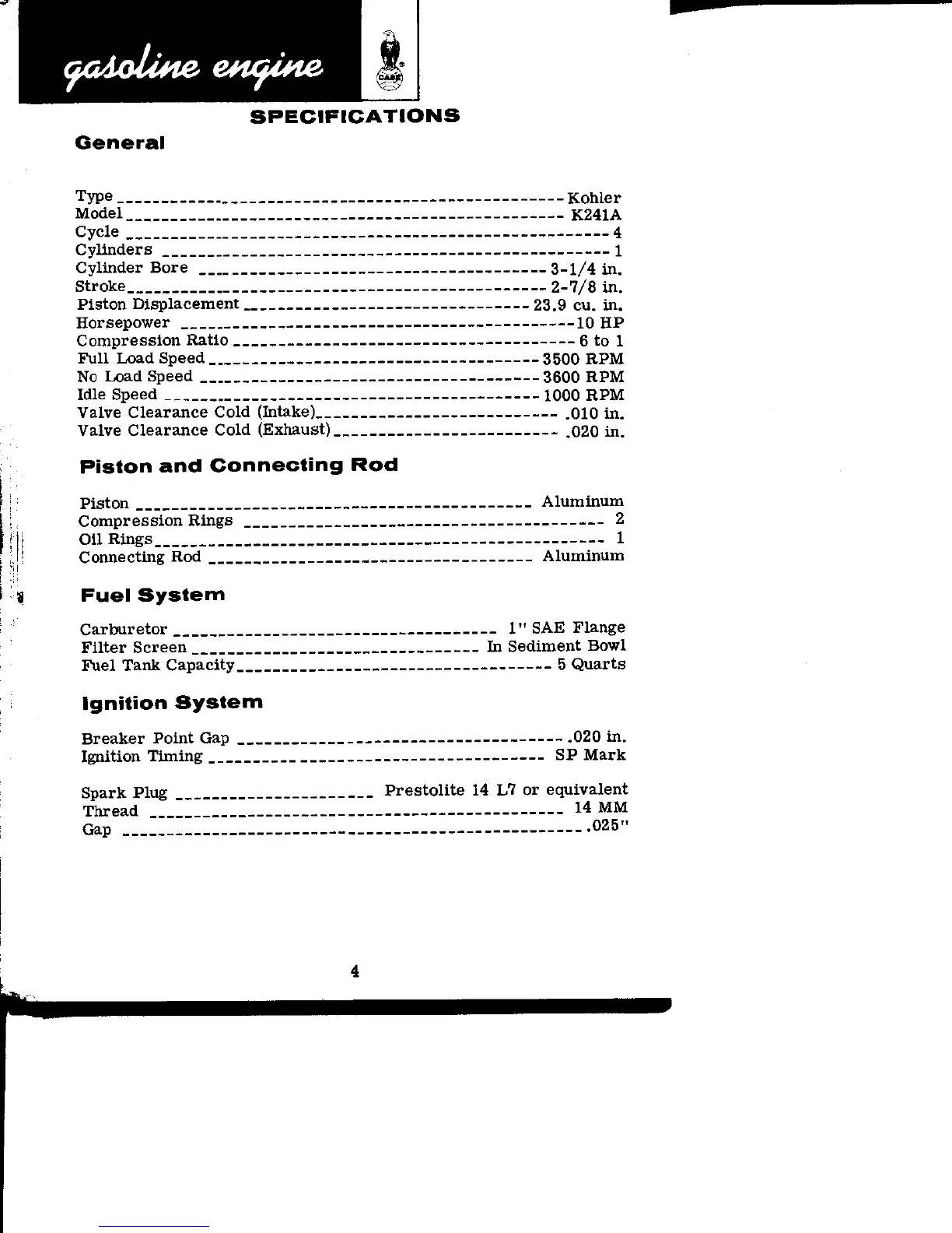 Case 120 - ENGINE SPECIFICATIONS; General Engine Details
