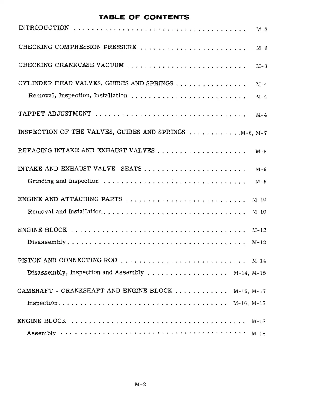 Removal, Inspection, Installation . . . . . . . • • . . • . • • • . . • . . . . . • • M-4