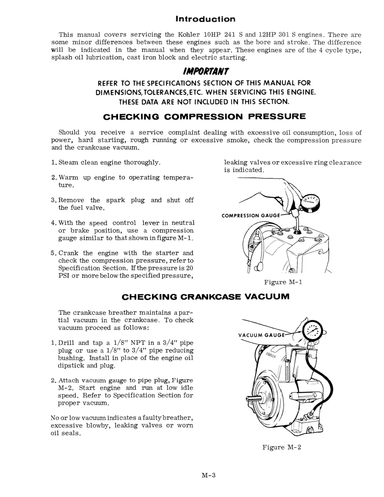 power, hard starting, rough running or excessive smoke, check the compression pressure