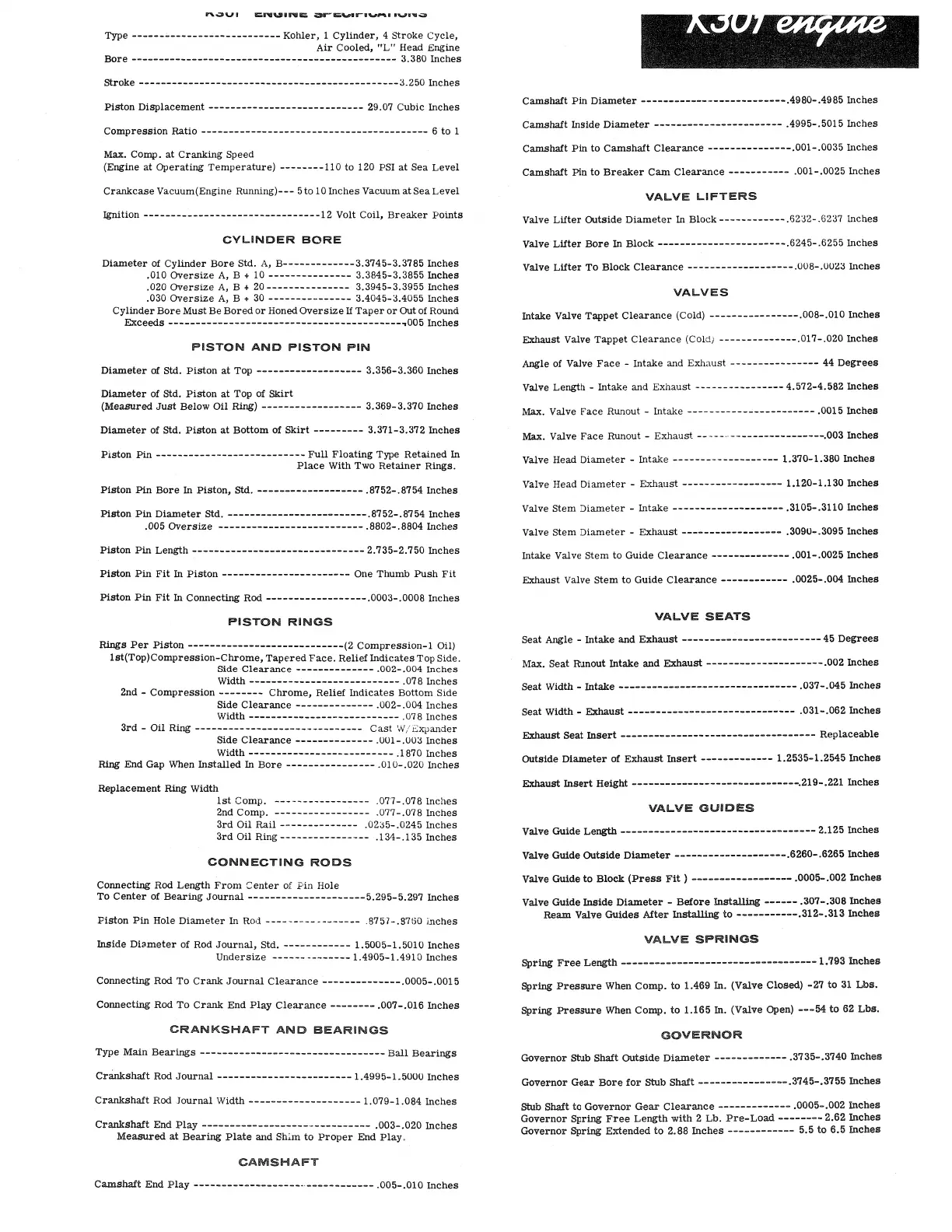Type --------------------------- Kohler, 1 Cylinder, 4 Stroke Cycle,