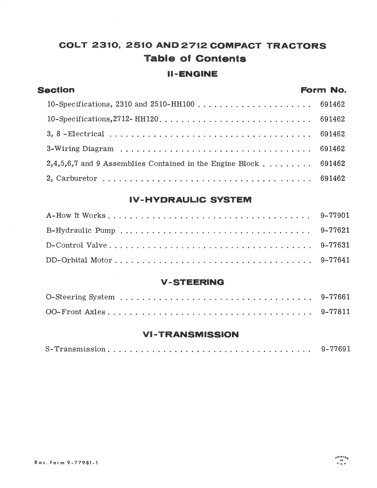 COLT 2310, 2510 AND.2712COMPACT TRACTORS