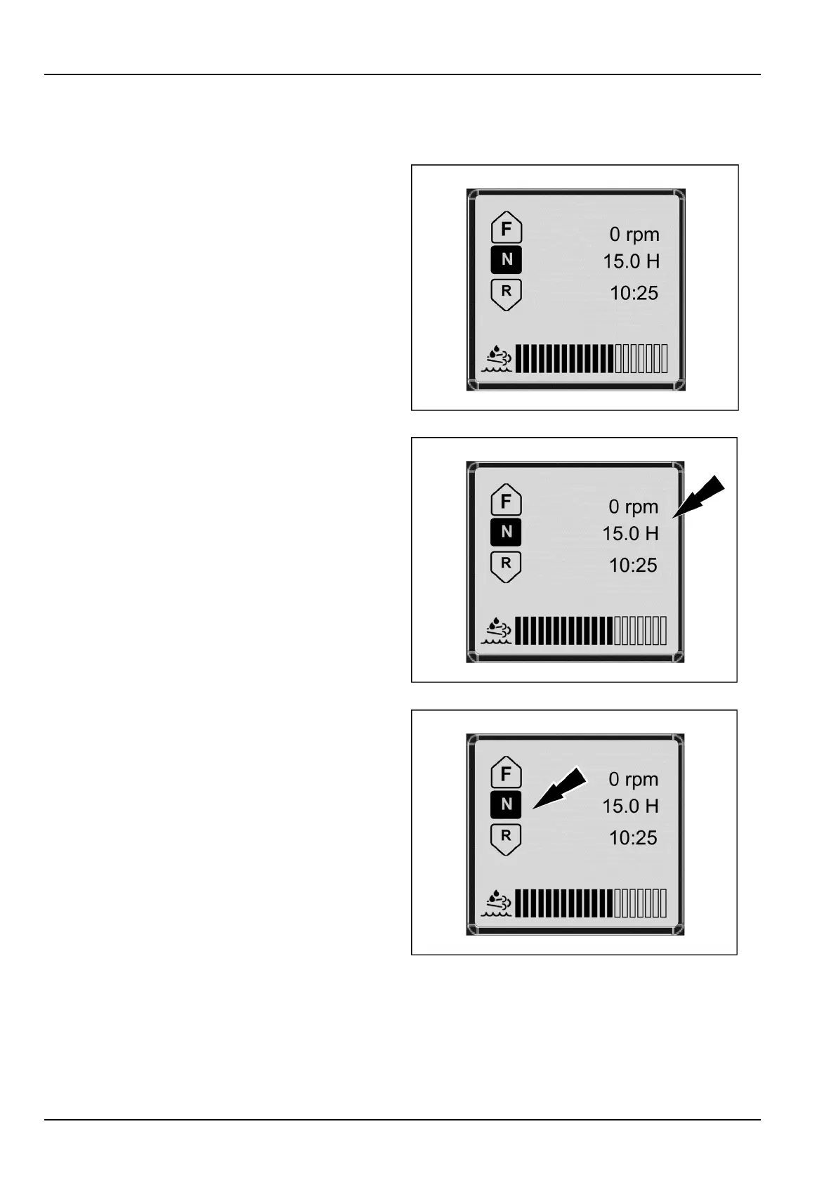 Thestart-upscreenshowsthemachinehours,RPM,and