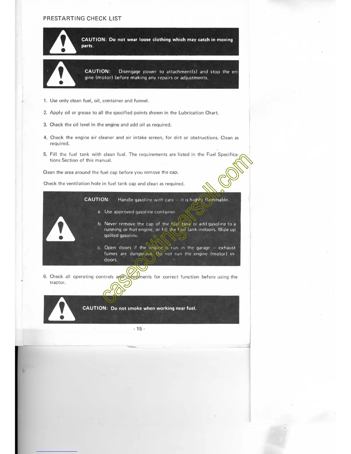 Case 210 - Prestarting Check List