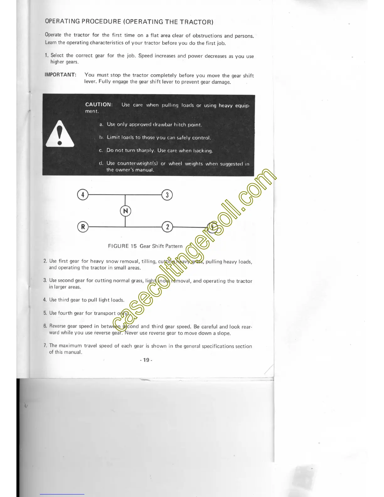 Case 210 - Operating Procedure; Gear Shift Pattern