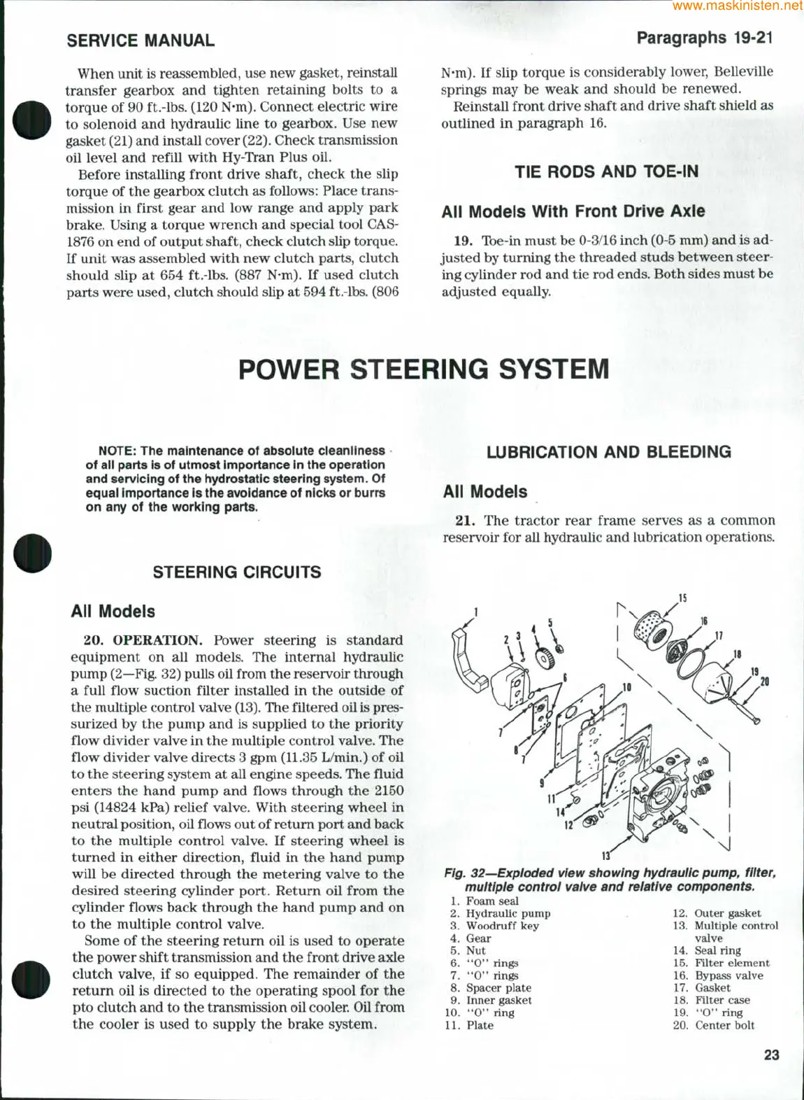 Fig. 32—Expioded view showing hydrauiic pump,
