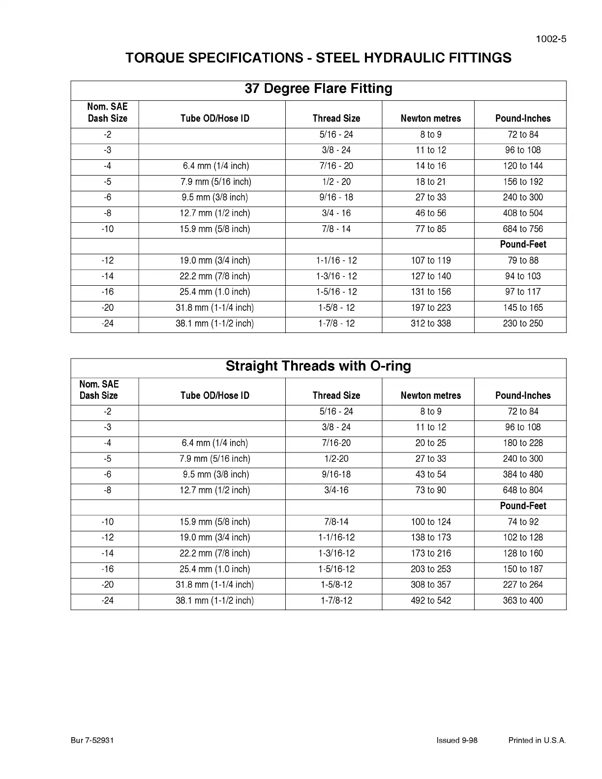 Case 420CT - Torque Specifications - Steel Hydraulic Fittings