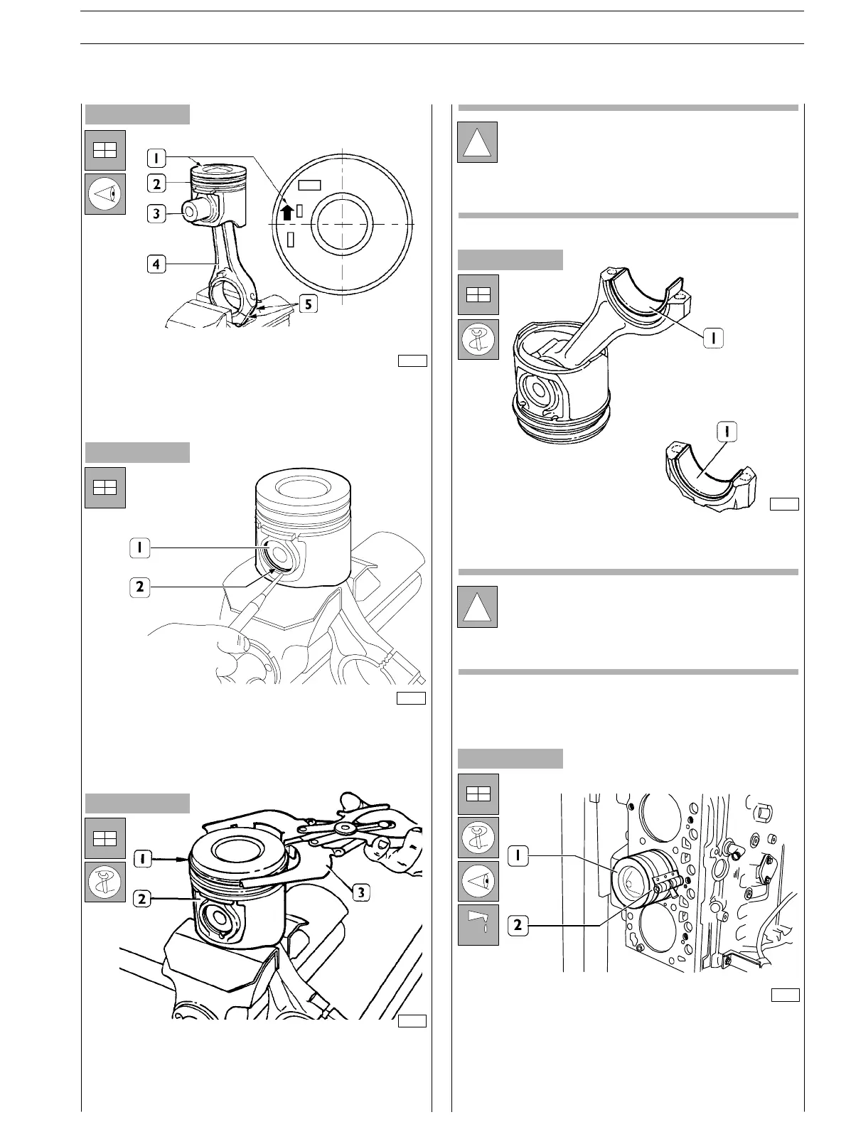Fit half bearin gs (1) on conn ec t ing rod and cap.