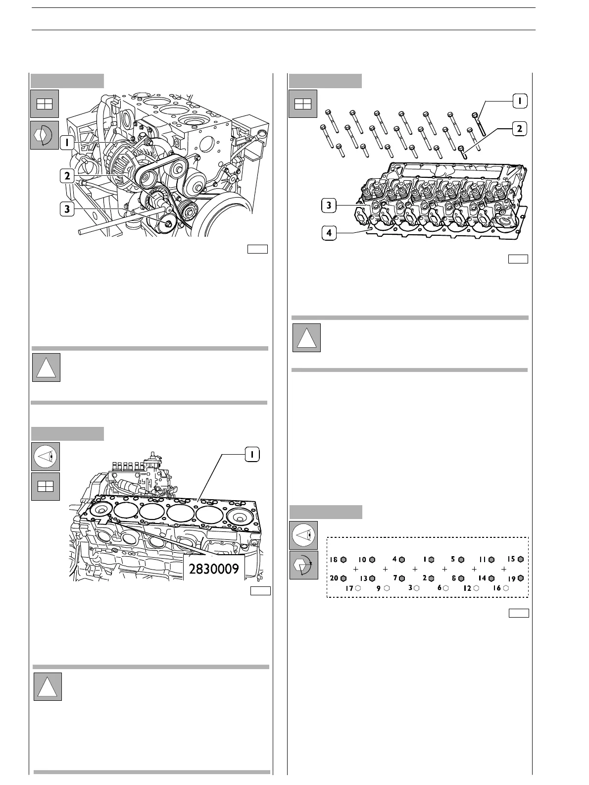 - Turn the automatic belt tensioner (2) to fit the belt (1)