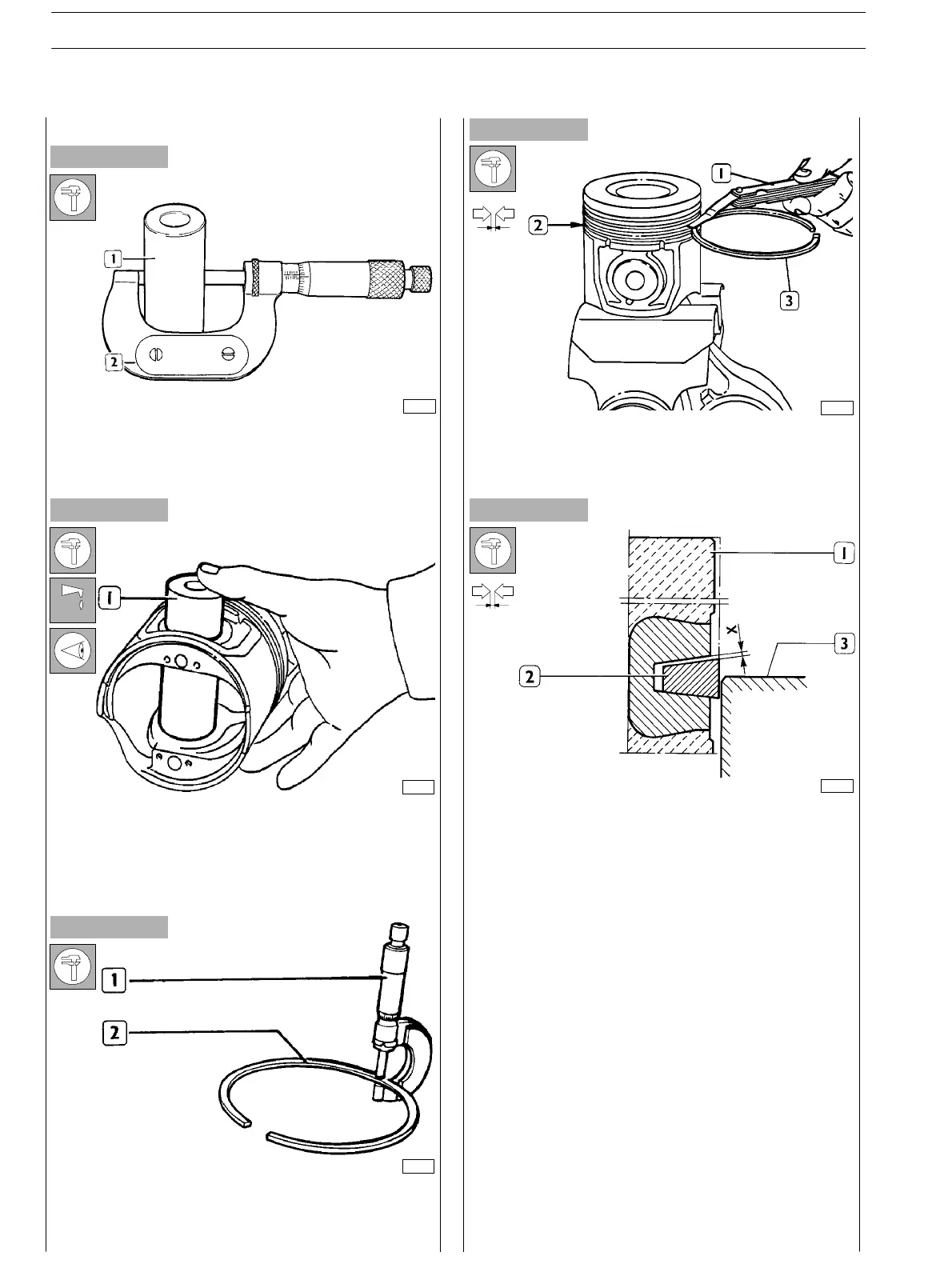 Lubricate the pin (1) and its seat on piston hubs with engine