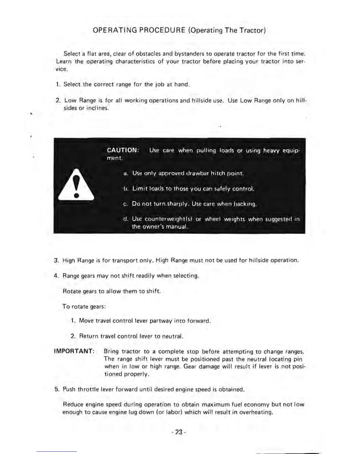 Case 446 - Tractor Operating Procedures; Selecting Range and Travel Control