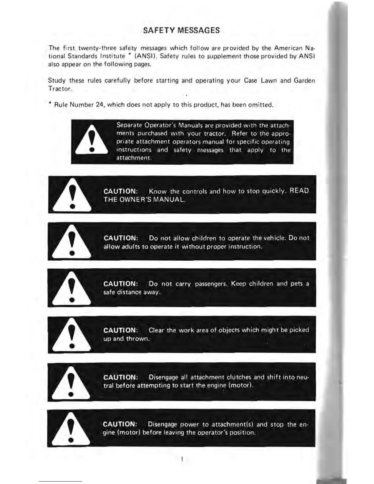 Case 446 - General Tractor Safety Precautions; Operation Safety Rules; Passenger and Work Area Safety