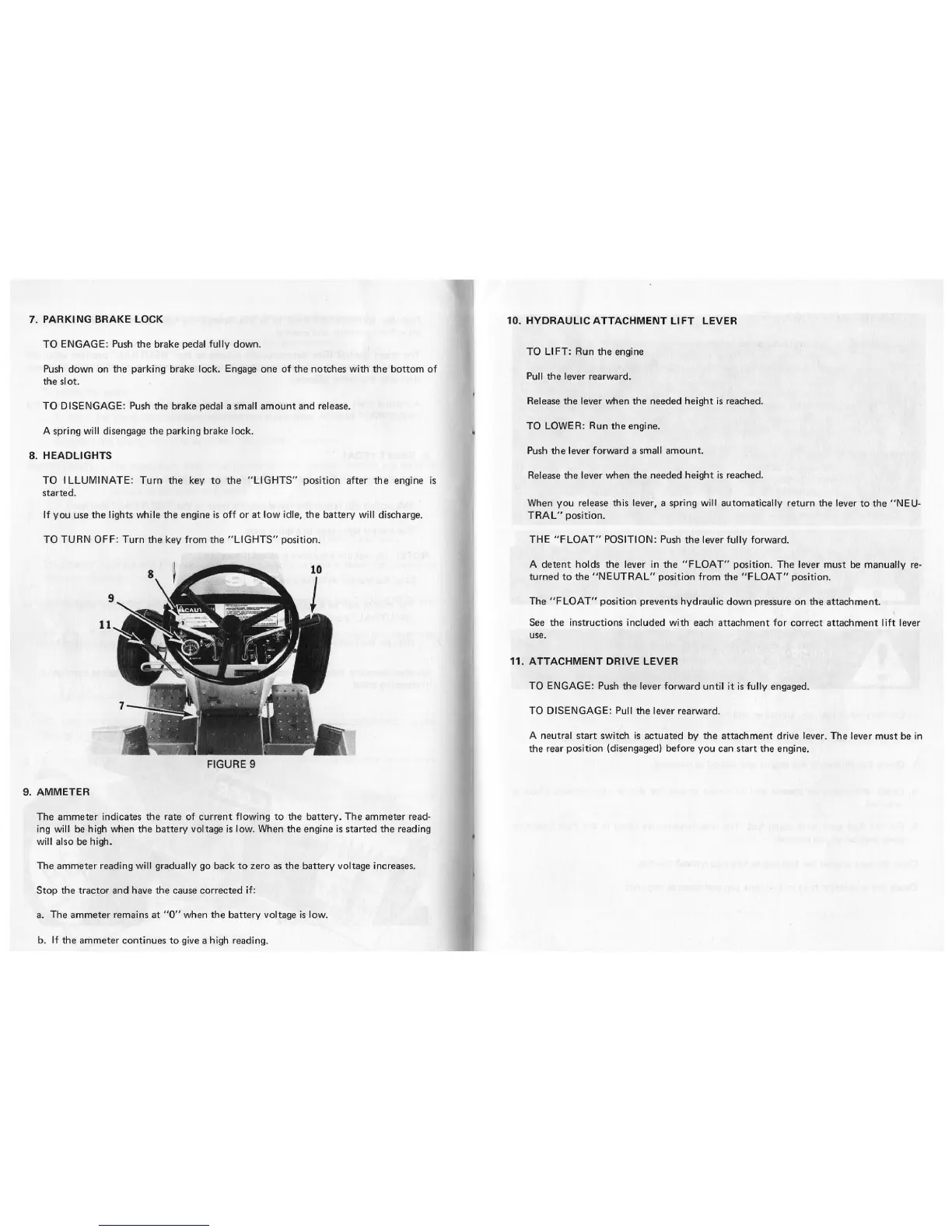 Case 448 - Parking Brake Lock; Headlights; Ammeter; Hydraulic Attachment Lift Lever