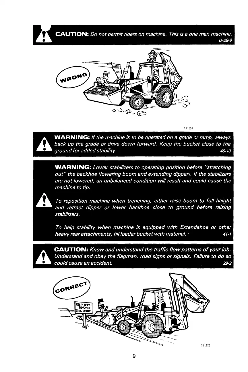 CAUTION: Do not permit riders on machine. This is a one man machine.