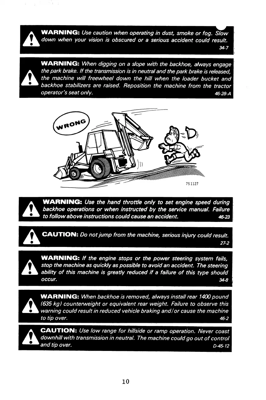 backhoe operations or when instructed by the service manual. Failure