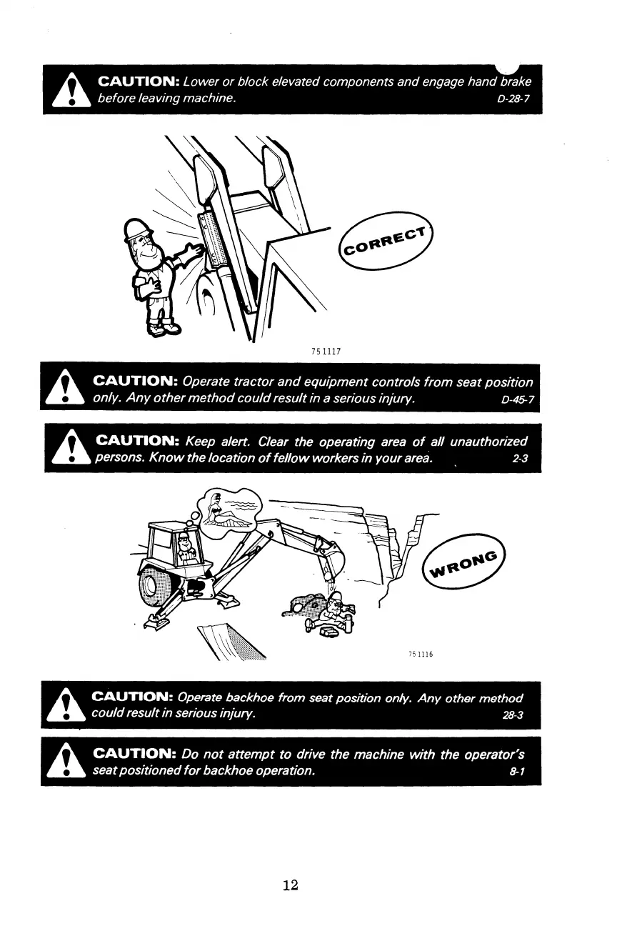 /';,.. CAUTION: Operate backhoe from seat position only. Any other method