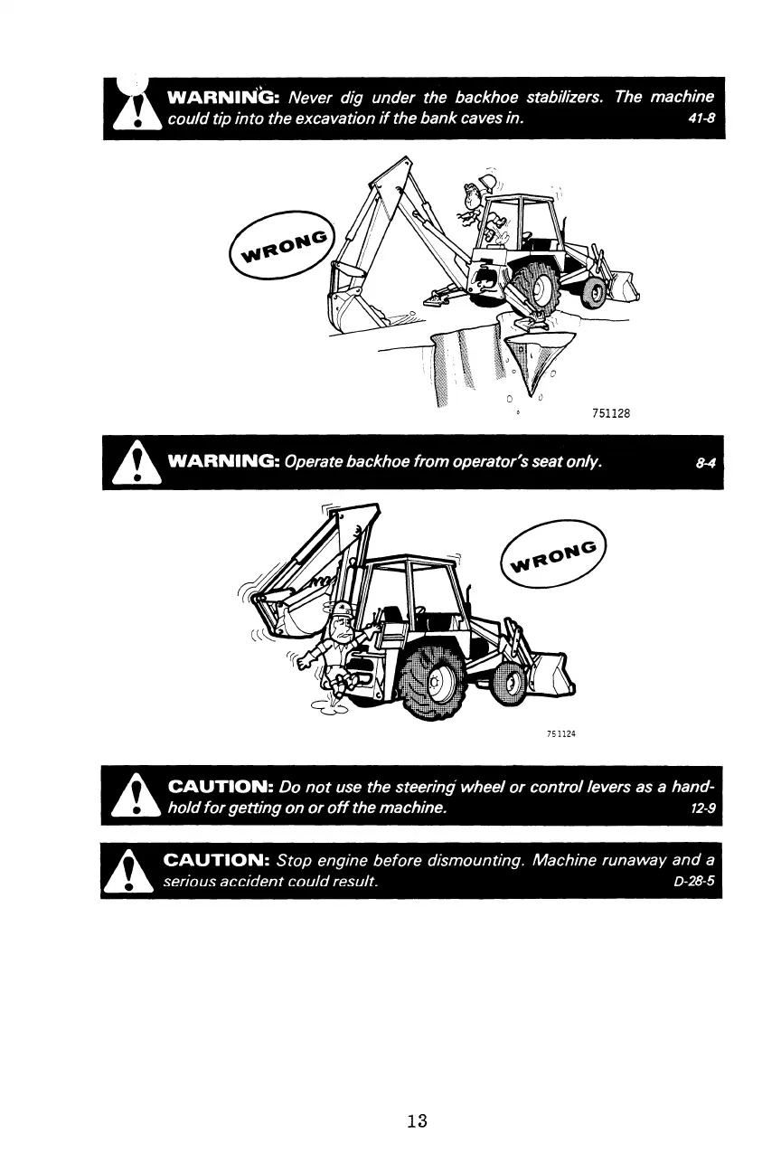 A WARNING: Operate backhoe from operator's seat only. B-4