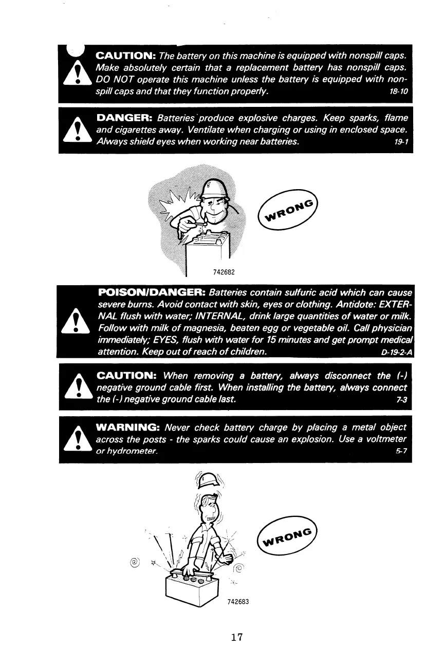 CAUTION: The battery on this machine is equipped with nonspill caps.