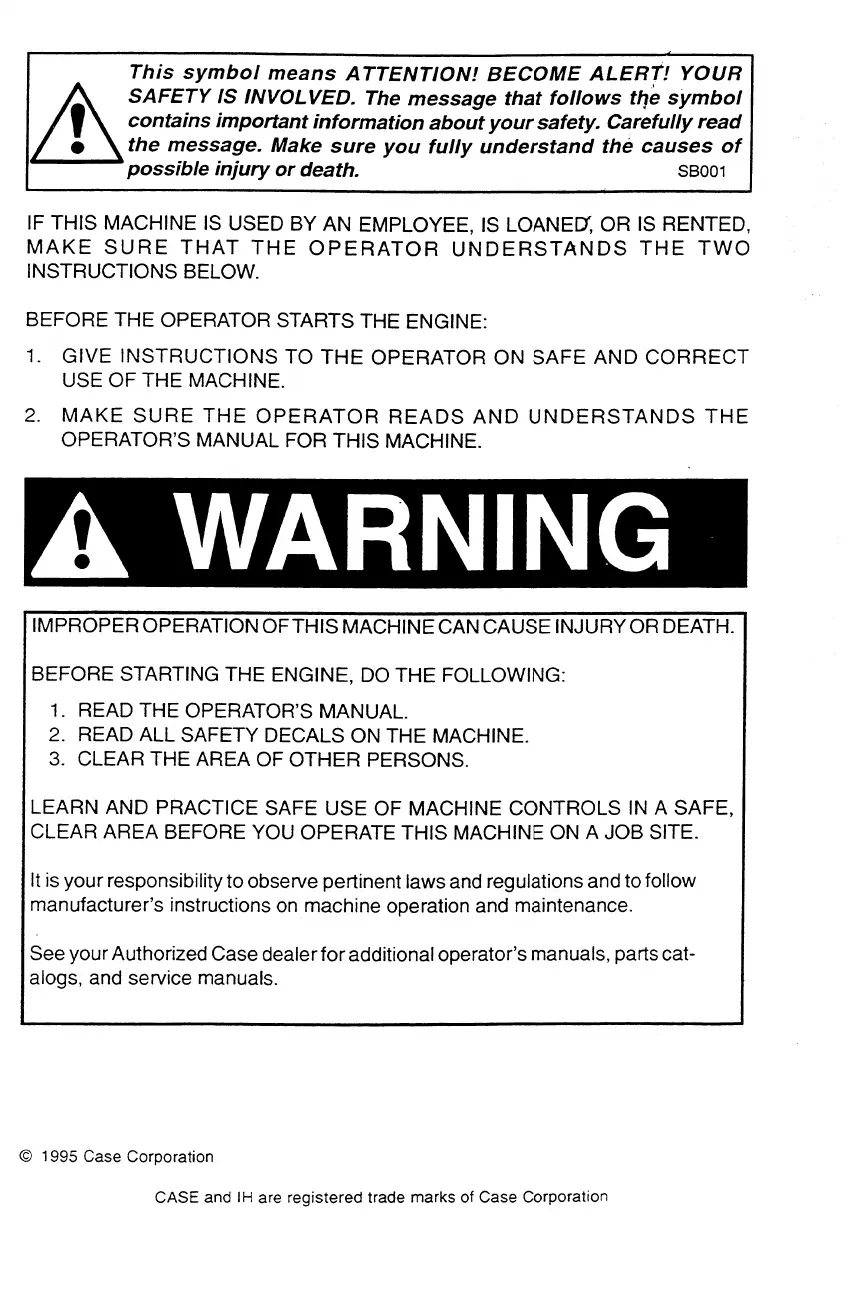 See your Authorized Case dealer for additional operator's manuals, parts cat-