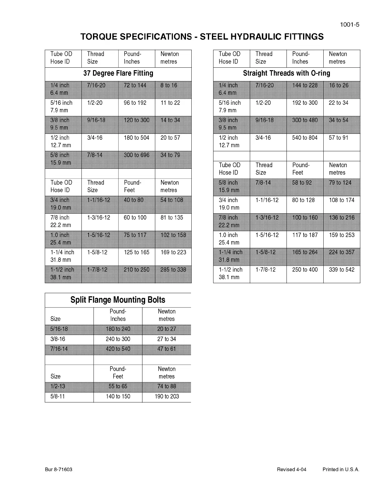 Case 521E - Torque Specifications - Steel Hydraulic Fittings