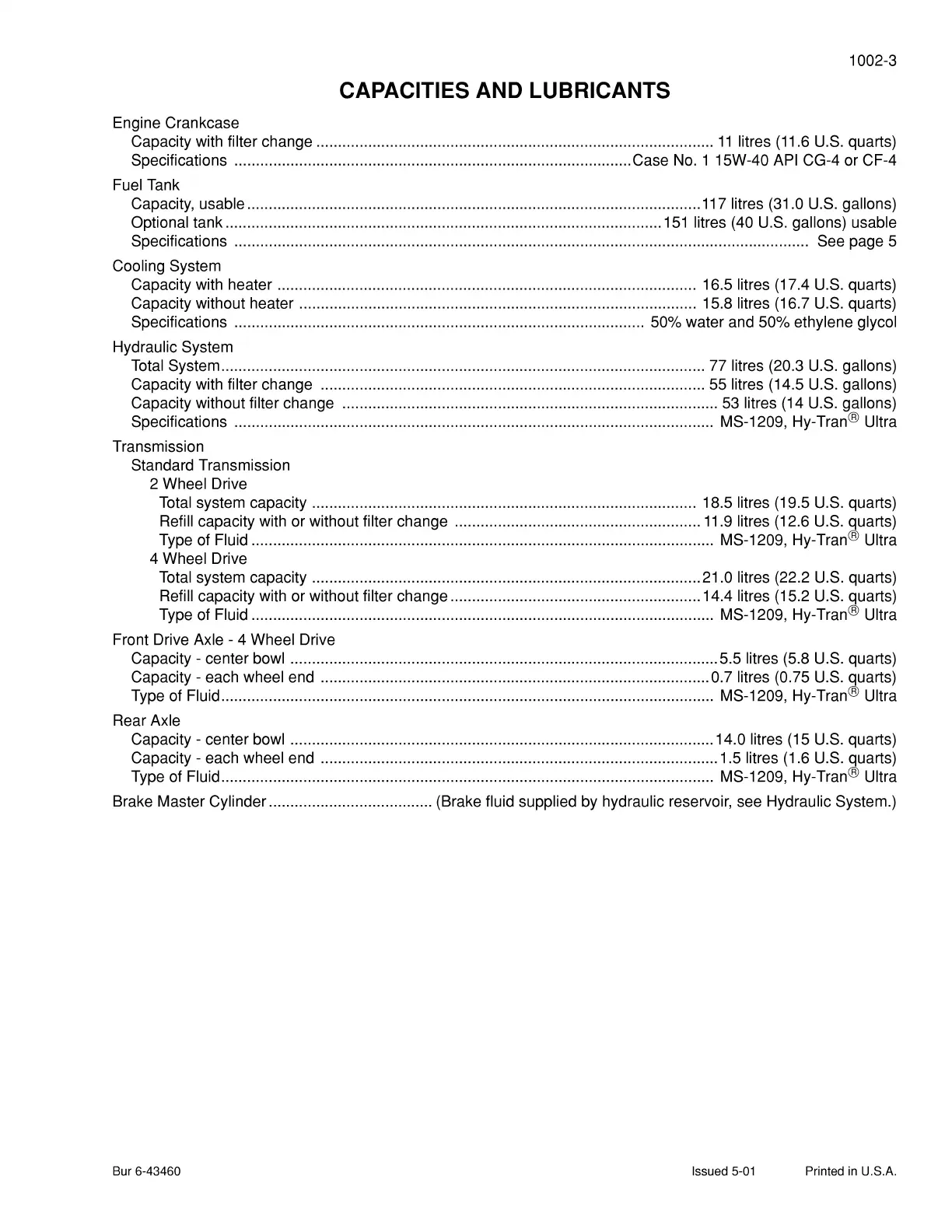 Capacity - each wheel end ............................................................................................ 1.5 litres (1.6 U.S. quarts)