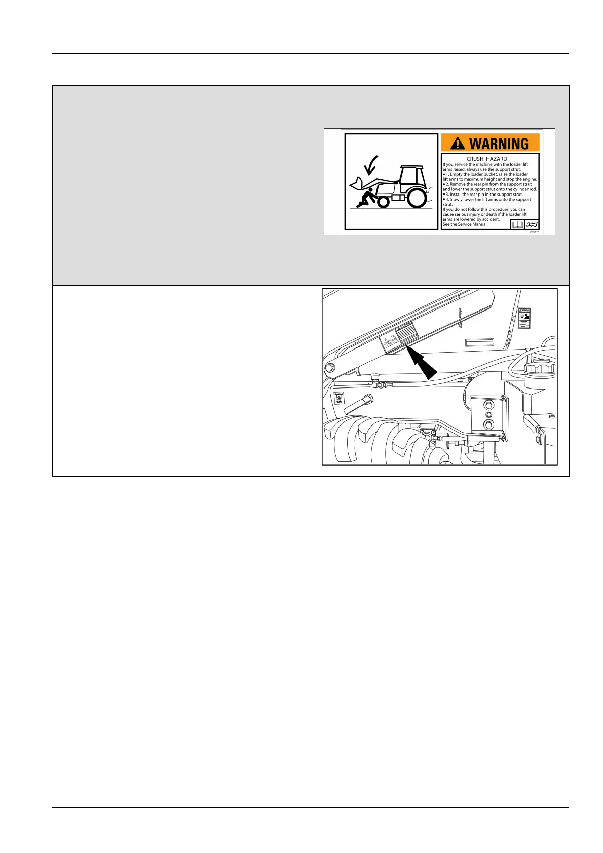 Crushhazard.Ifyouservicemachinewiththeloader