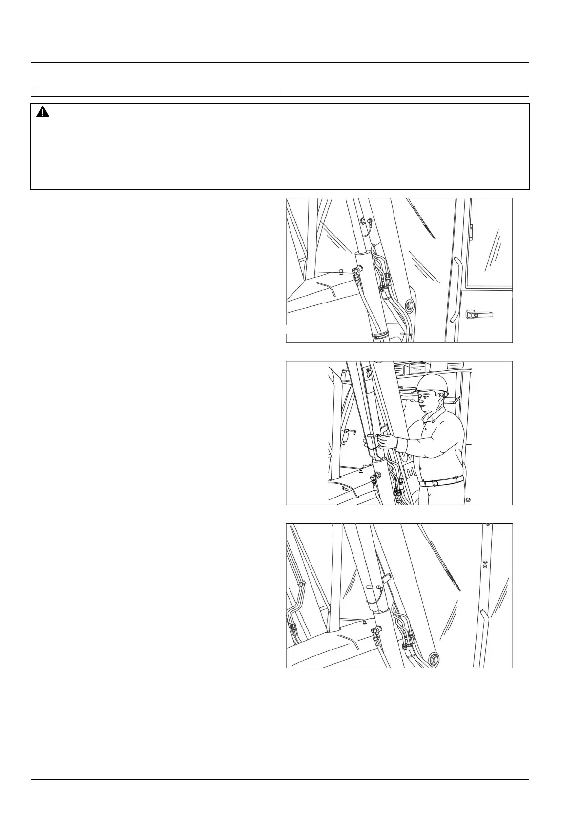 Ifyouservicethemachinewiththeloaderliftarmsraised,alwaysusethesupportstrut.Removethe