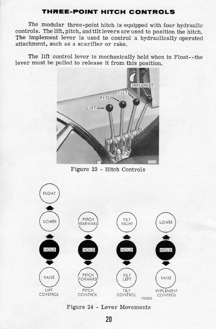 Case 580 ck - THREE-POINT HITCH CONTROLS; Three-Point Hitch Lever Movements