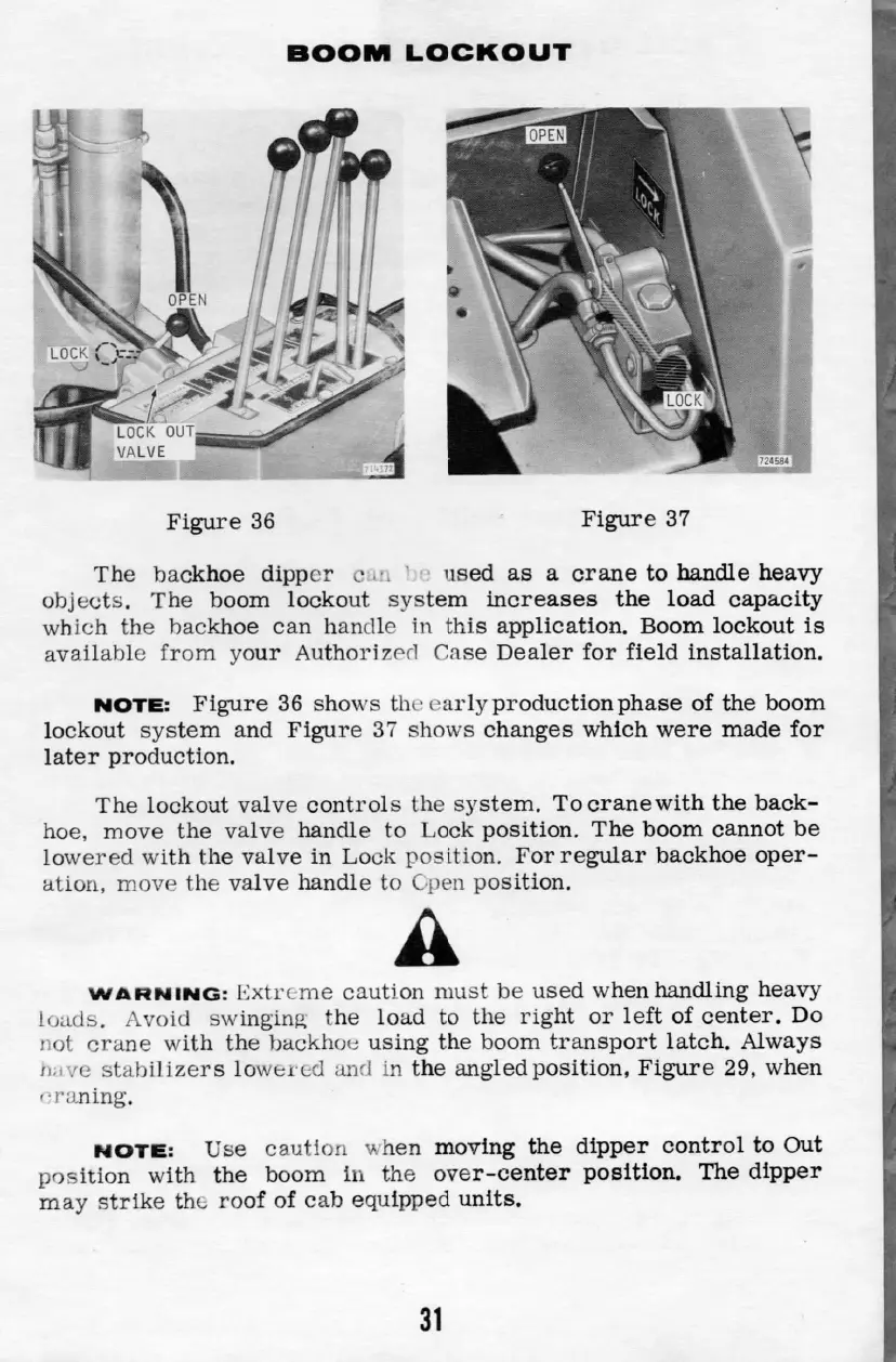 Case 580 ck - BOOM LOCKOUT; Boom Lockout System Function